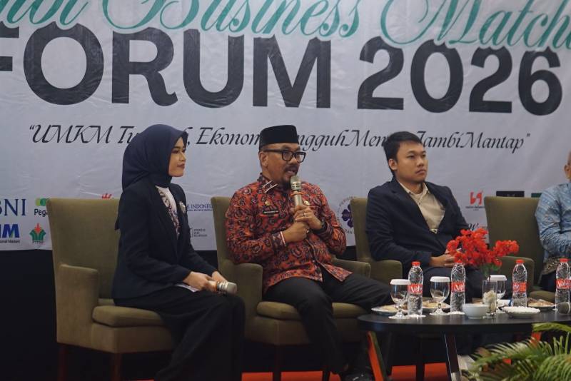 Komitmen PT PLN (Persero) Unit Induk Distribusi Sumatera Selatan, Jambi, dan Bengkulu (UID S2JB) dalam memperkuat ekosistem Usaha Mikro, Kecil, dan Menengah (UMKM) terus diwujudkan melalui pembinaan berkelanjutan di Rumah BUMN Jambi. Salah satu langkah konkret tersebut diwujudkan melalui penyelenggaraan Jambi _Business Matching Forum_ 2026, yang digelar oleh Rumah BUMN Jambi—mitra binaan PLN UID S2JB—bersama Dinas Perindustrian dan Perdagangan Provinsi Jambi, Kamis (9/4), di Swiss-Belhotel Jambi.