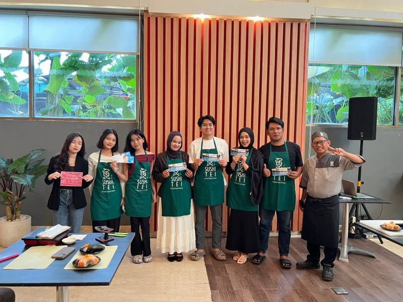Cooking class ini dipimpin langsung oleh Chef dari Sushi Tei, yang membagikan teknik dasar hingga tips penyajian sushi dengan standar kualitas restoran. Para peserta tampak antusias mengikuti setiap proses, mulai dari persiapan bahan hingga penyajian akhir, menjadikan momen memasak bersama sebagai pengalaman yang menyenangkan dan berkesan.