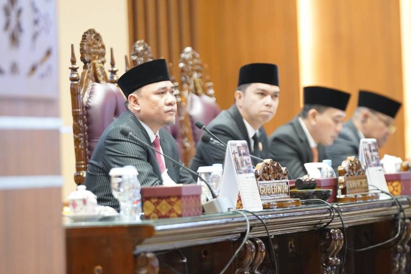 Rapat Paripurna XVIII (18) dengan agenda Penyampaian Laporan Hasil Pembahasan dan Penelitian Banggar DPRD Prov.Sumsel terhadap Raperda Perubahan APBD Prov.Sumsel TA 2025 dipimpin oleh Ketua DPRD Prov.Sumsel Andie Dinialdie, SE, MM didampingi oleh para Wakil Ketua DPRD Prov.Sumsel; Raden Gempita, SH, H. Nopianto, S.Sos, MM, dan H.M. Ilyas Panji Alam, S.E., S.H., M.M, dihadiri oleh Gubernur Sumsel; H. Herman Deru, SH, MM, Sekretaris Daerah; Drs. H. Edward Chandra, MH, Sekretaris DPRD; H. Aprizal, S.Ag, SE, M.Si, Para Kepala Dinas serta perwakilan Organisasi Perangkat Daerah (OPD) di lingkungan Pemerintah Prov.Sumsel serta tamu undangan lainnya.