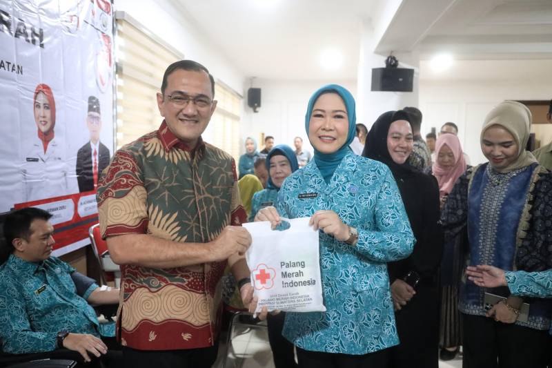 Ketua Tim Penggerak PKK Provinsi Sumsel yang juga selaku Ketua Palang Merah Indonesia (PMI) Provinsi Sumatera Selatan (Sumsel) Hj Febrita Lustia HD menghadiri Bakti Sosial Donor Darah dalam rangka Hari Kesatuan Gerak (HKG) PKK ke-53 Tahun 2025, bertempat di Aula Sriwijaya Kantor Badan Pendapatan Daerah (Bapenda) Provinsi Sumsel, Sabtu (5/4/2025).