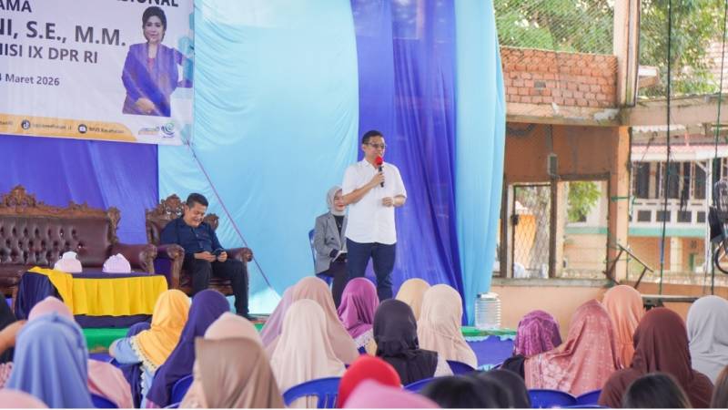 BPJS Kesehatan bersama Anggota DPR RI Irma Suryani menggelar kegiatan sosialisasi Program Jaminan Kesehatan Nasional (JKN) kepada masyarakat di Desa Pemulutan Ulu, Kecamatan Pemulutan, Kabupaten Ogan Ilir, Sumatera Selatan, Sabtu (14/3/2026). Kegiatan ini bertujuan meningkatkan pemahaman masyarakat mengenai berbagai layanan serta kemudahan akses dalam Program JKN.