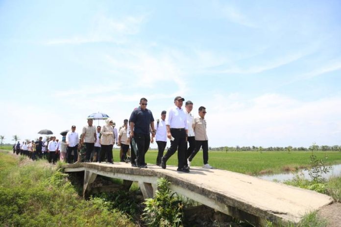 Adapun lahan sawah yang baru ditinjau sebelumnya sudah menghasilkan 7 ton, merupakan kondisi lahan sawah pasang surut, dengan rata-rata produksi beras sebanyak 5,8 ton hasil panen.