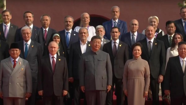 Para pemimpin dunia itu kemudian foto bersama. Prabowo berada di barisan depan, tepatnya di sebelah kanan Putin. Lalu, sebelah Putin ada Xi Jinping dan istrinya, Peng Liyuan.