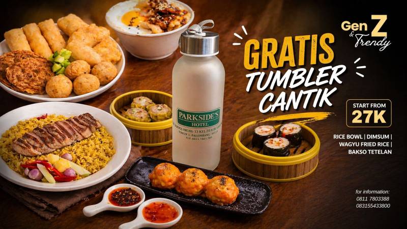 Dalam upaya menghadirkan pengalaman kuliner yang kekinian dan terjangkau, Parkside’s Hotel Palembang meluncurkan program promo terbaru bertajuk “Gen Z & Trendy”. Program ini dirancang khusus untuk kalangan mahasiswa dan anak muda yang ingin menikmati hidangan lezat dengan harga bersahabat tanpa mengurangi kualitas rasa.