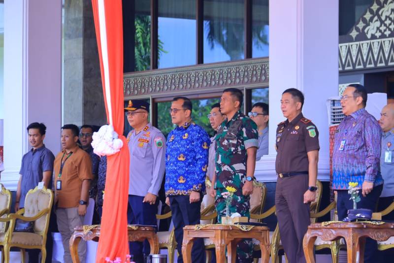Sekretaris Daerah (Sekda) Provinsi Sumsel, Dr. Drs. H. Edward Candra, M.H., Mewakili Gubernur Sumatera selatan secara resmi melepas peserta mudik gratis Lebaran 2026 dengan moda transportasi bus di Griya Agung Palembang, Selasa (17/3/2026).
