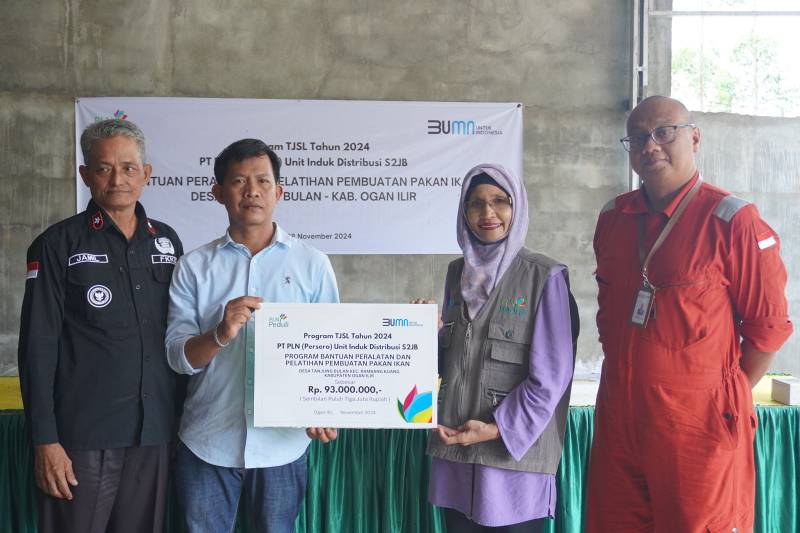 Dalam upaya mendukung produktivitas peternakan dan tambak ikan, PLN Unit Induk Distribusi Sumatera Selatan, Jambi, dan Bengkulu (UID S2JB) Unit Pelaksana Pelayanan Pelanggan Ogan Ilir (UP3 OGI) menjalankan Program PLN Peduli melalui penyediaan peralatan dan pelatihan pembuatan pakan ikan kepada masyarakat kelompok ternak ikan Desa Tanjung Bulan, Kabupaten Ogan Ilir (28/11/24).