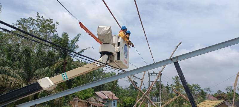 Sebanyak tujuh personel Tim PDKB PLN UP3 Jambi diterjunkan untuk melakukan pemasangan pelindung konduktor pada titik rawan. Perangkat ini berfungsi mengisolasi bagian kabel bertegangan sehingga meminimalkan potensi sentuhan langsung maupun risiko induksi listrik dari aktivitas konstruksi di bawahnya.