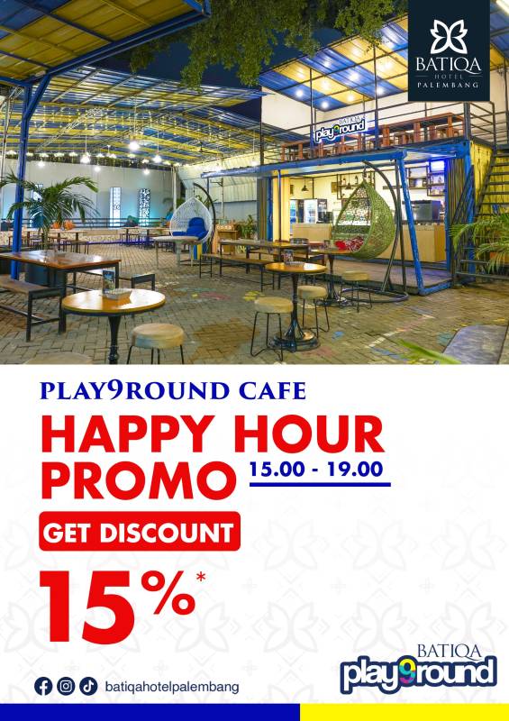 Dari jam 15.00 – 19.00 WIB, kamu bisa dapetin DISKON 15% buat semua makanan dan minuman. Jadi, pulang kerja atau abis kelas, langsung gas ke Play9round buat chill bareng temen-temen. Nongkrong makin seru, dompet pun aman!